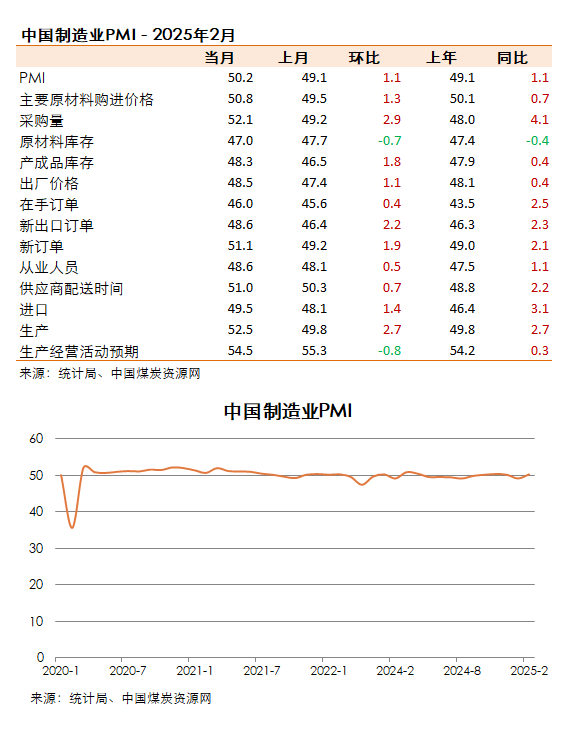 2月份,制造業(yè)PMI升至50.2%,重返擴(kuò)張區(qū)間。